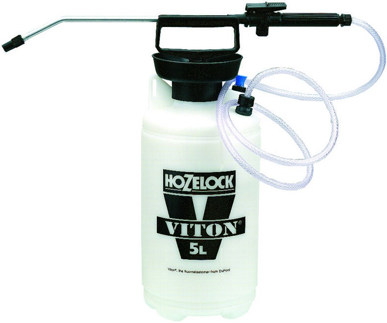 "Hozelock" Painepullo, johon pumpataan tarvittava suihkutuspaine (noin 40 pumppausta). Kestää orgaanisia liuottimia kuten öljypohjaisia rasvanpoistoaineita, tiettyjä ruosteensuoja-aineita, lakkabensiinia jne. Myös öljyn muottiruiskutukseen. Viton-tiivisteet, jotka kestävät erittäin hyvin orgaanisia liuottimia.